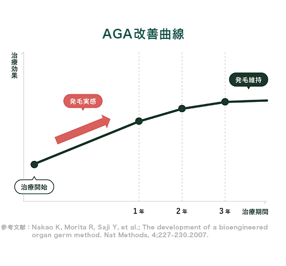 治療を継続することで発毛効果が得られますので、AGA対策を開始していきましょう。